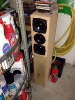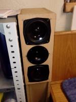 Die seit Jahren eingestaubten Restgehäuse einer TL SB 25 SM,garniere es mit 2x Dynavox DY-131-9A 5" 4Ohm und 1x DX 156 8 Ohm (ich stehe auf Underdogs),