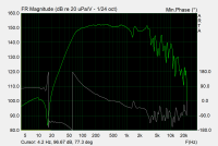 Edit3: Meine Beispielübertragungsfunktion zeigt auch die Beschränkungen der Minimalphase. Gezeigt ist eine gefügte Nahfeldmessung eines 8" PA Topteils.