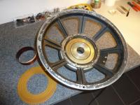 Ich ging dann letztlich auf einen Vorschlag von Rainer Rihm ein, und verlebte einen 10mm² CU-Draht in der Kehle zwischen Schwingspulenüberstand und Membran. Ist zwar jetzt etwa 5g. weniger als das Original, stört aber keinen großen Geist.