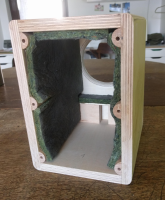 Kanten abrunden.... hm, das wird schwierig. An die Ecken innen kommt man nicht gut ran. Eine Dreiecksleiste reinkleben geht natürlich! Dann kann man auch nicht mehr von links nach rechts durch die Box durchgucken (finde das irritierend). Für alles Weitere müsste ich den inneren Aufbau rausbrechen und ersetzen. Dann könnte ich auch gleich den Querschnitt erhöhen. Aber ich freue mich echt nicht darauf, mit dem Damping 10 zu kämpfen! Dann vielleicht sogar doch eher ein Neubau. Inzwischen kann ich auf Gehrung sägen, das sieht bei Multiplex ganz interessant aus!