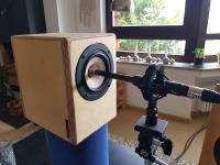 Nun mache ich mir Sorgen, ob der Bass für den 16qm Raum ausreichen wird, und ob ich mir dahingehend mit meiner kreativen Umsetzung des Bassreflexsystems ein Bein gestellt habe: