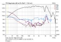 Der Anselm misst via Multiton, mit auf Hörempfindlichkeit angepasstem Spektrum. Multitonmessungen sind in den aktuellen Versionen von ARTA sogar noch simpler zu messen als Zweiton-IMD; überall wo ich zuletzt IMD gemessen hatte habe ich auch Multiton mit gemacht. Leider aber wiederum kann prinzipbedingt die Verzerrung nur als TD&N ermittelt werden, und das grafisch dargestellte Verzerrungsbild sieht zwischen Probanden so ident aus, dass wenig abzulesen ist. Fand ich somit wenig aussagekräftig.