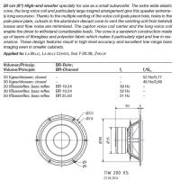 Ich habe hier 2 von den 8-Ohmern parallel in zusammen ~65l CB (Qtc=0,85) bis 300Hz laufen aktiv mit Linkwitz-Entzerrung, und kann den Treiber allerwärmstens empfehlen.