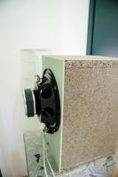 Ich mach mal was aus Vorhandenem, so einfach wie möglich..... Basis ist ein KG DN110 Muffenstopfen.. Daran wird ein Stück Messerfurnier 0,8mm 16x30cm mit Schmelzkleber angeklebt als Schallwand.. Eine "Box um die Box" brauchts ja nicht.. Die Box wird mit Schmelzkleber von hinten an die Schallwand geklebt, fertig. Klar, den Sperrkreis werd ich anpassen müssen, kein Problem....