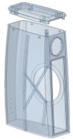 Spielen soll das Ganze in einem ca. 1l großem gedruckten Gehäuse mit einer Passivmembran, der erste Entwurf sieht so aus: