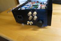 Ich sehe auf den Fotos das du die Masseseite der Cinch-Buchsen an die Masse/Erde gelegt hast. Damit überbrückst du den Widerstand R24.