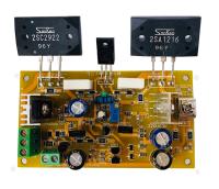 Der Gain ist runtergesetzt und ein paar Kondensatoren an den Treibern sind dazu gekommen. Die Rückkopplung/negativ Feedback wurde geändert. Die Ausgangsleistung ist um ca 50 Watt gesunken. Heißt, es stehen 2x 150 Watt zur Verfügung bei gleicher Spannung. Die Leistungsangaben der Chinesen stimmen eh nie. Das erinnert immer irgendwie an PMPO...