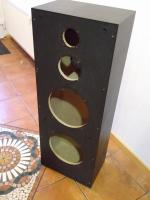 Die Gehäuse haben die Außenmaßen B36,5 x H 98 x 24,2 cm. Sie sind nichts besonderes, einfach 16 mm Spanplatte ohne Verstrebungen, was dann 66 L Volumen entspricht.