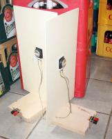 Für die Tiefontunterstützung habe ich in die Schreibtischplatte ganz vorne an der Wand zwei 10" Öffnungen gefräst, wo Geschlossene Gehäuse mit Monacor SPH-250KE drunter stehen und nach oben spielen.