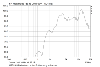 Der MPT-165 ist sicher kein perfekter Hochtöner, könnte für diesen speziellen Anwendungsfall aber gut passen. Mit einem SPL von 95 dB und einer Impedanz mit Weiche von ca. 10 Ohm und der relativ starken Bündelung durch den Hornvorsatz entspricht er bis auf den nicht perfekten Frequenzgang und die vorhandenen Resonanzgrade absolut dem Beuteschema. Die beiden letztgenannten Punkte relativieren sich sicher auch noch durch den angestrebten Einsatzzweck, bei dem nur reflektierte Schallanteile mit Raumeinfluss beim Hörer ankommen.