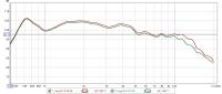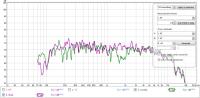 Man sieht bei der roten Kurve mit Widerstand den deutlich schlechteren Wirkungsgrad aber dafür deutlich lineareren Frequenzgangdurch die gebügelten Impedanzspitzen. In wie weit sich das mit potenteren Endstufen als dem des DATS verhält ist noch zu messen.