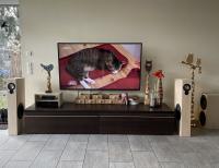 die letzte Umsetzung ein Dreiweger aus Seitenbass TIW250XS in BR (Trennung am WIIM bei 200 Hz) mit TI100 und G25NDWG angesteuert über das WIIM Ultra und zwei Class D Verstärkern.