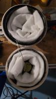 4. Das ist auf jeden Fall viel zu wenig Dämpfung: Nun, Filz 5mm an die Innenwand geklebt, dann aufgefüllt mit Dämmwolle - glaub da hab ich auch ein Bild hier im Anhang. und dann noch die stärker gepresste Dämmkugel in der Mitte.. hat alles nix gebracht..