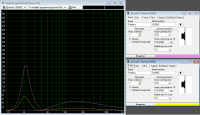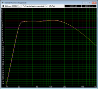 4. Bild: gleiches Chassis im geschlossenen Gehäuse und entsprechend dem gleichen Amplitudenverlauf wie die BR-Variante entzerrt (gelb)