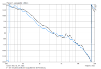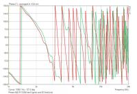 Ich könnte mir vorstellen, dass das schnelle Drehen der Phase unter Winkel damit zusammen hängt, dass durch die Laufzeitunterschiede die Bereiche der Membran, die sich näher am Mikro befinden bzw. weiter entfernt sind, gegenphasige Anteile zu messen sind. Das beruht ausschließlich auf der Geometrie und ist unabhängig von Resonanzen des Chassis. Je größer der Durchmesser der Membran umso tiefer liegt die Frequenz, bei der der Effekt auftritt. Also ist nicht nur die unter Winkel auftretende stärkere Bündelung großer Membranen ein Problem bei hohen Trennfrequenzen, sondern auch die schwierig zu beherrschende Phasenlage.