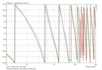 Nennenswerte Abweichungen gibt es jetzt nur noch da, wo die Phase in der 30 Grad-Messung plötzlich anfängt, deutlich schneller zu drehen. Der Punkt, an dem das passiert, scheint weniger vom Resonanzspektrum des Chassis, als vielmehr von der Geometrie – sprich dem Chassisdurchmesser – abzuhängen. Der 20er resoniert genau wie der 25er ab ca. 2,5 kHz recht heftig. Trotzdem fangen die Schweinereien in der Phase, also das deutlich schnellere Drehen beim 20er erst bei ca. 5,5 kHz an, wobei der 25er die Phase unter Winkel bereits ab ca. 3 kHz stark dreht. Der noch zum Vergleich herangezogene 17er zeigt nur gering ausgeprägte Resonanzen der Membran, dreht aber ebenfalls die Phase unter Winkel stark, wobei der Effekt hier erst so richtig über 10 kHz auftritt.