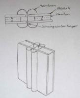 Bisher habe ich Membran und Schwingspulenträger aus Papier und aus einem Stück gefertigt. Die Schwingspule habe ich aus Lackdraht aufgeklebt, immer im Rechteck, wobei die Eckpunkte durch Stecknadeln Markiert wurden. Das ging ganz gut.