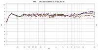 Frequenzgang in ca. 1,2 Metern gemessen. Die zweite Messung zeigt die Wirkung des Vorwiderstands von 1,5Ohm vor der Hochtonweiche. Da kann man von 0 - 3 Ohm spielen. Jens hat ja auf 30° abgestimmt und da ist die Box auch ohne Vorwiderstand sehr linear.