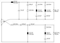 Aber ok; Du hast den Fehdehandschuh geschmissen. Dann nehme ich den mal auf. Ein paar Bauteile verändert und eines dazugenommen, um die Trennfrequenz etwas nach oben zu schieben. Das ist nicht fürchterlich anders, aber durch den anderen Flankenverlauf dürfte die Trennfrequenz ca. 200-300Hz höher rutschen. Ob das dann reicht? Egal; Fingerübung: