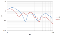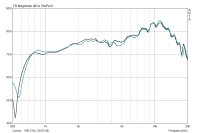 Hier noch der Vergleich mit einem zweiten Exemplar. Ist nicht überragend, aber auch nicht völlig daneben. Gemessen wurde ohne Rückkammer, also als Dipol in 1 m Entfernung und Fensterung.